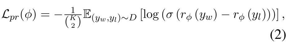 通过最小化标准的成对排序损失(pairwise ranking loss)训练奖励模型: