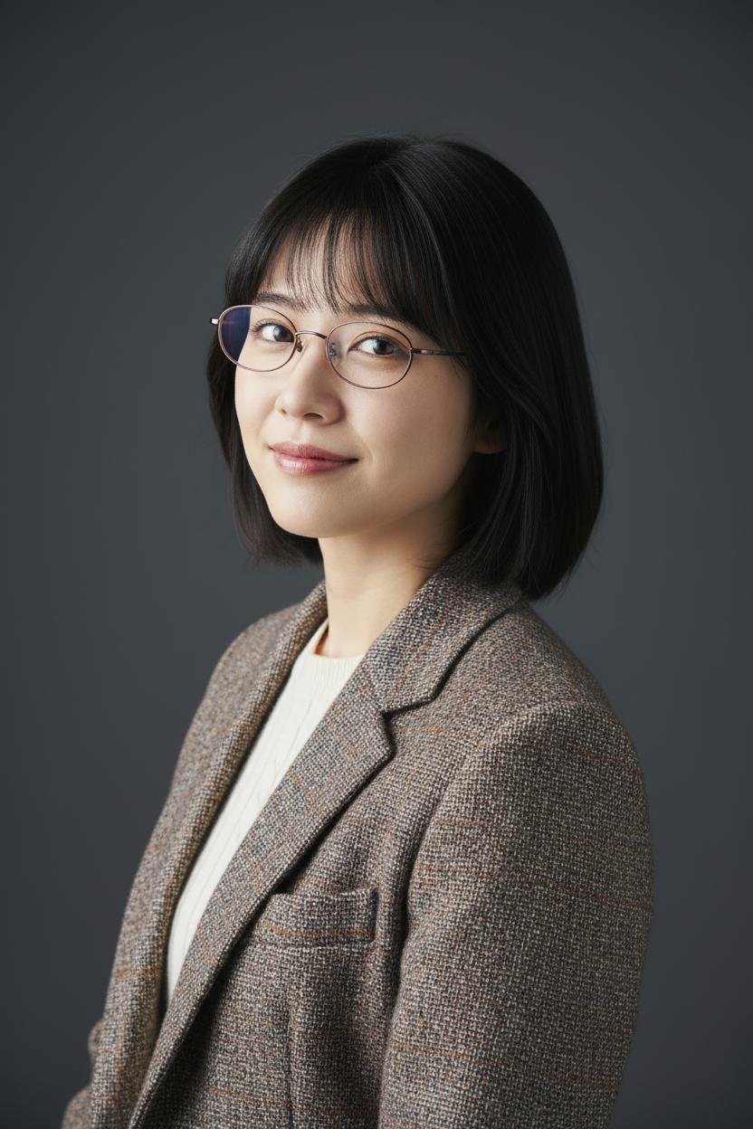 - 光照 (Lighting): 均匀的正面光(演播室灯光),面部无阴影,无明暗对比。