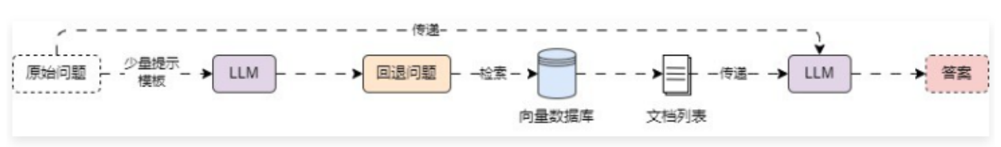 对于一些复杂的问题,除了使用 问题分解 来得到子问题亦或者依赖问题,还可以为复杂问题生成一个前置问题,通过前置问题来执行相应的检索,这就是 Setp-Back 回答回退策略(后退提示),这是一种用于增强语言模型的推理和问题解决能力的技巧,它鼓励 LLM 从一个给定的问题或问题后退一步,提出一个更抽象、更高级的问题,涵盖原始查询的本质。