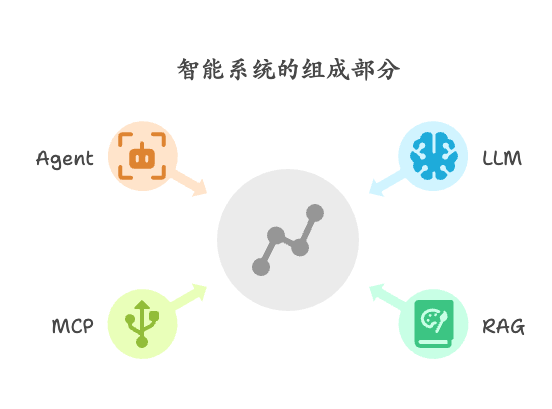 一句话总结:LLM 是核心的智力,而 RAG、MCP、Agent,则是在这个智力基础上,搭建起来的知识体系、协作体系和执行体系。