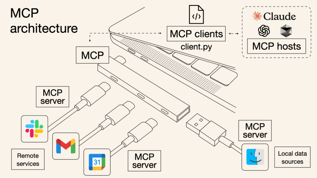 MCP 这玩意说白了,它不是一个具体的软件,也不是一个什么新技术、新模型,它就是一套行业标准,跟USB接口、蓝牙协议一个性质,只不过这一次是给大模型与工具之间定义的标准。