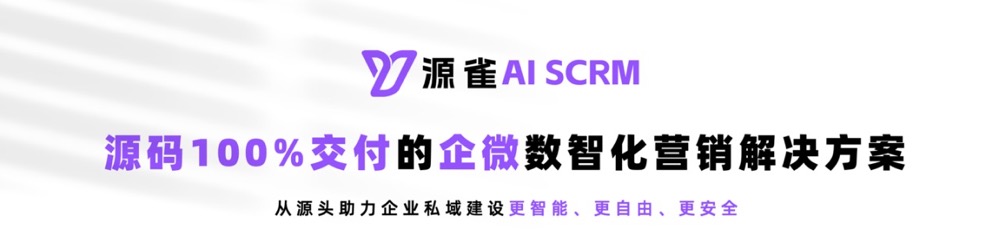 作为国内领先的开源 SCRM 解决方案提供商,源雀 SCRM 以 "100% 源码交付 + AI 智能赋能" 的创新模式,为企业打造安全、灵活、高效的私域运营生态。通过完全开放的源代码交付,企业可自主掌控系统底层逻辑,实现功能模块的自由组合与深度定制。