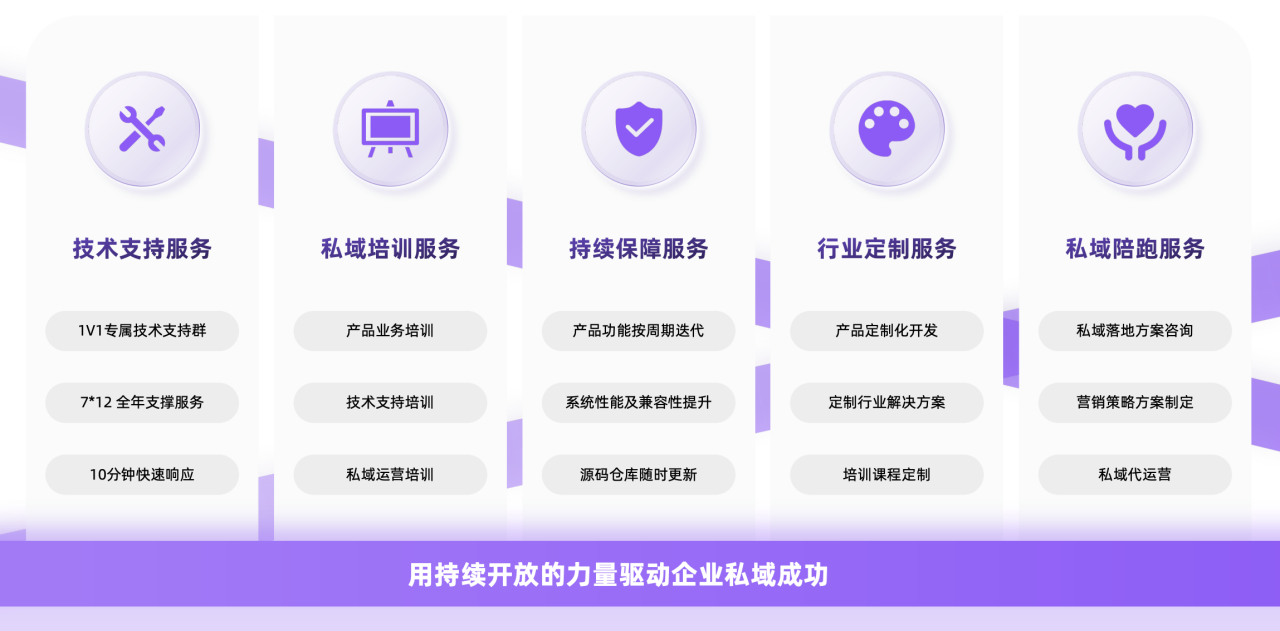 除此之外,源雀SCRM还配套五大专家服务,全面保障系统稳定可用,实现业务可持续增长: