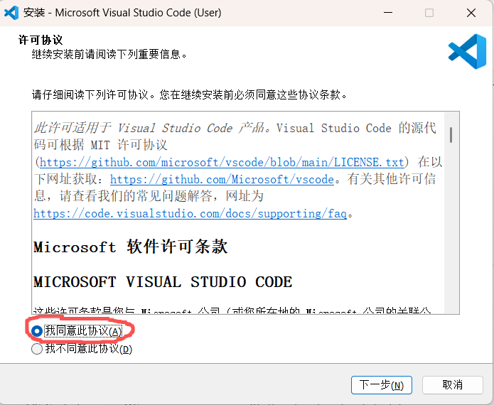 2、等待下载完成,启动安装程序,此界面勾选”我同意此协议“: