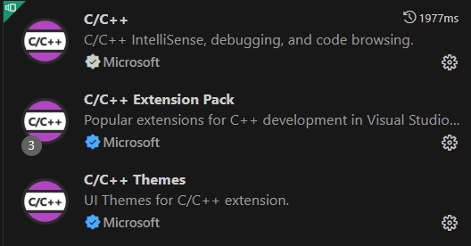 补充:此处还需要下载底下的“C/C++ Extension Pack”和“C/C++ Themes”,与“C/C++”一并下载好。