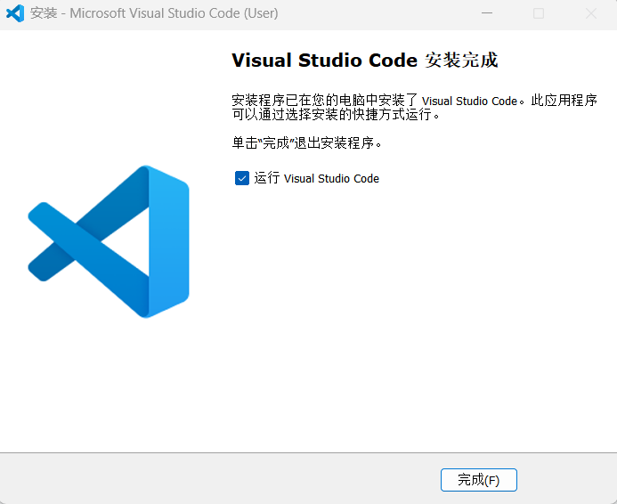 等待安装完成,此界面点击完成,即可启动VS Code: