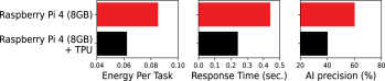 图2展示了在配备TPU的Raspberry Pi 4上,AI精度、响应时间和每任务能耗的综合表现。 -