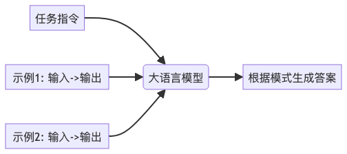 - 描述:在指令中提供少量(通常是2-5个)输入-输出示例,让模型通过示例学习任务模式。