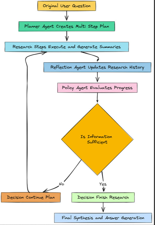 这种自我批判循环正是将我们的系统从脚本化工作流程提升为自主智能体的关键所在。它是一种机制,使系统能够判断何时已收集到足够的证据,从而有信心地回答用户的问题。