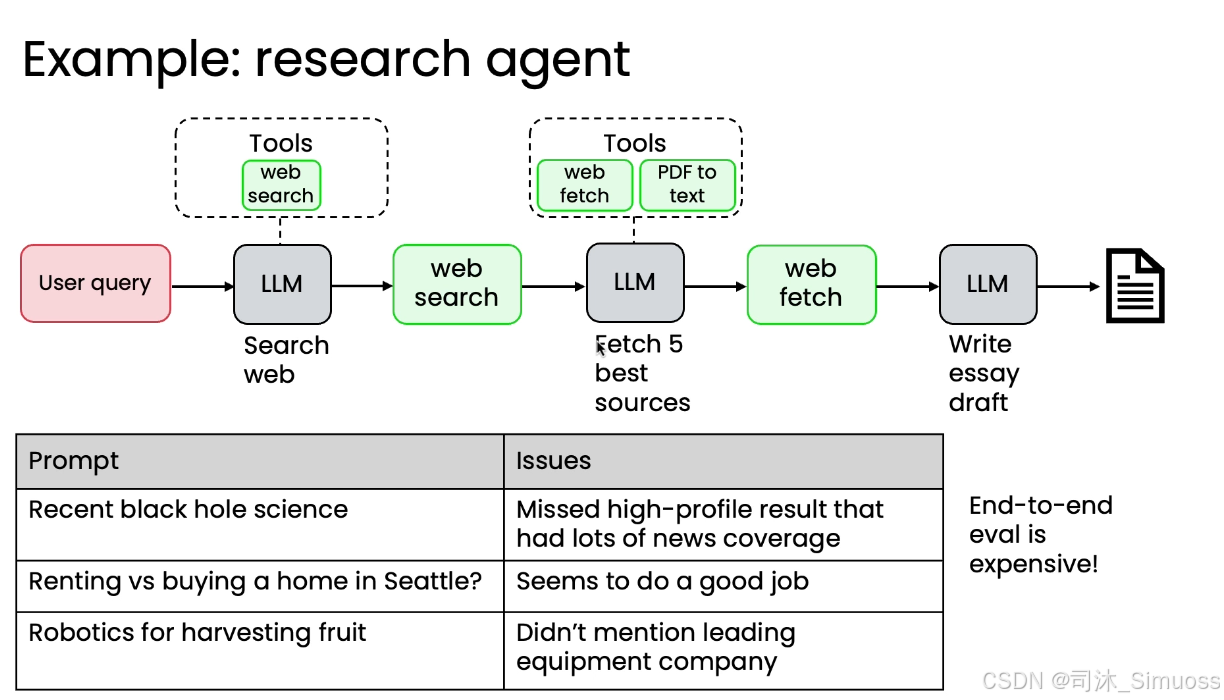 - 端到端评估成本高昂,即使是更换搜索引擎这样的小改动,都需要重新运行整个复杂的工作流程进行端到端评估,时间和金钱成本很高。同时,其他组件的随机性或噪声可能会掩盖被改进组件带来的微小、增量改进。
