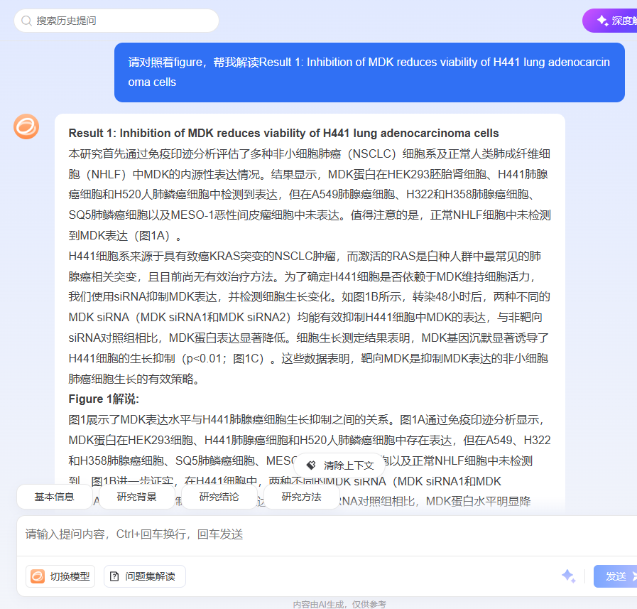 科研问题往往需要多角度分析,文档解读支持切换不同的AI模型进行解读: