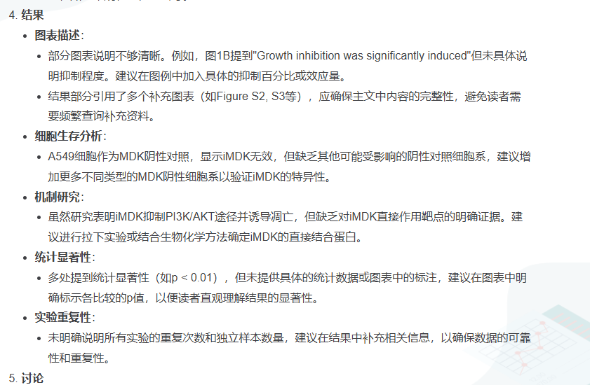 - “讨论部分未充分对比前人研究成果,可增加2-3篇高影响力文献引用”。
