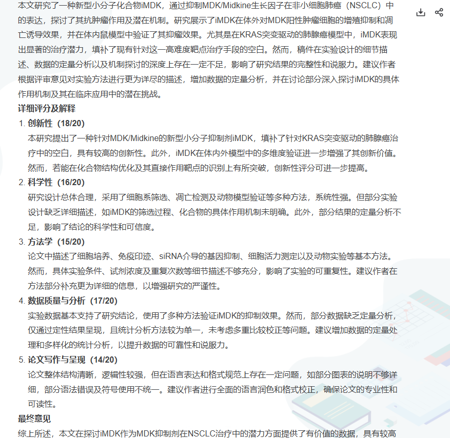 然而,许多研究者都有这样的经历:信心满满地提交论文,却在数周后收到冗长的审稿意见,甚至直接被拒。系统会通过 AI 模型自动分析论文结构、逻辑、语言、研究方法等多个维度,从“审稿人视角”出发,对论文逐章给出评审意见。MedPeer 模拟评审依先进AI,能够在论文正式投稿前,自动对稿件进行评估、打分与结构化点评,帮助科研人员快速定位问题,优化论文质量。,它为科研人员提供了一种“提前体验审稿人视角”的全