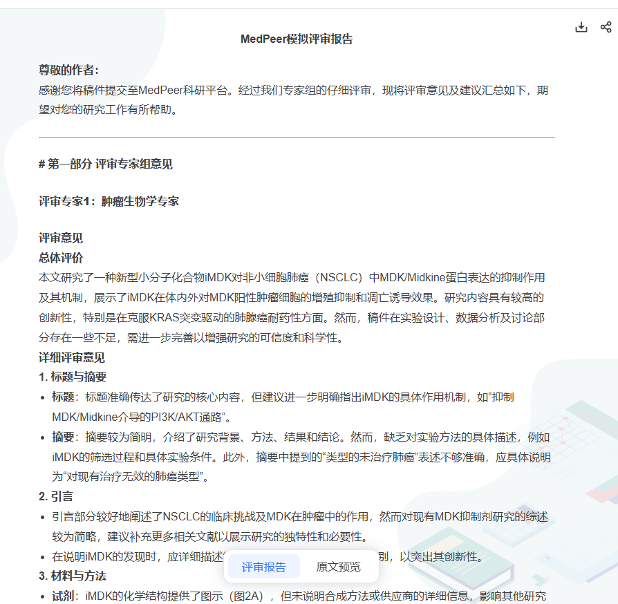 二、MedPeer 模拟评审:AI驱动的“虚拟审稿人”
