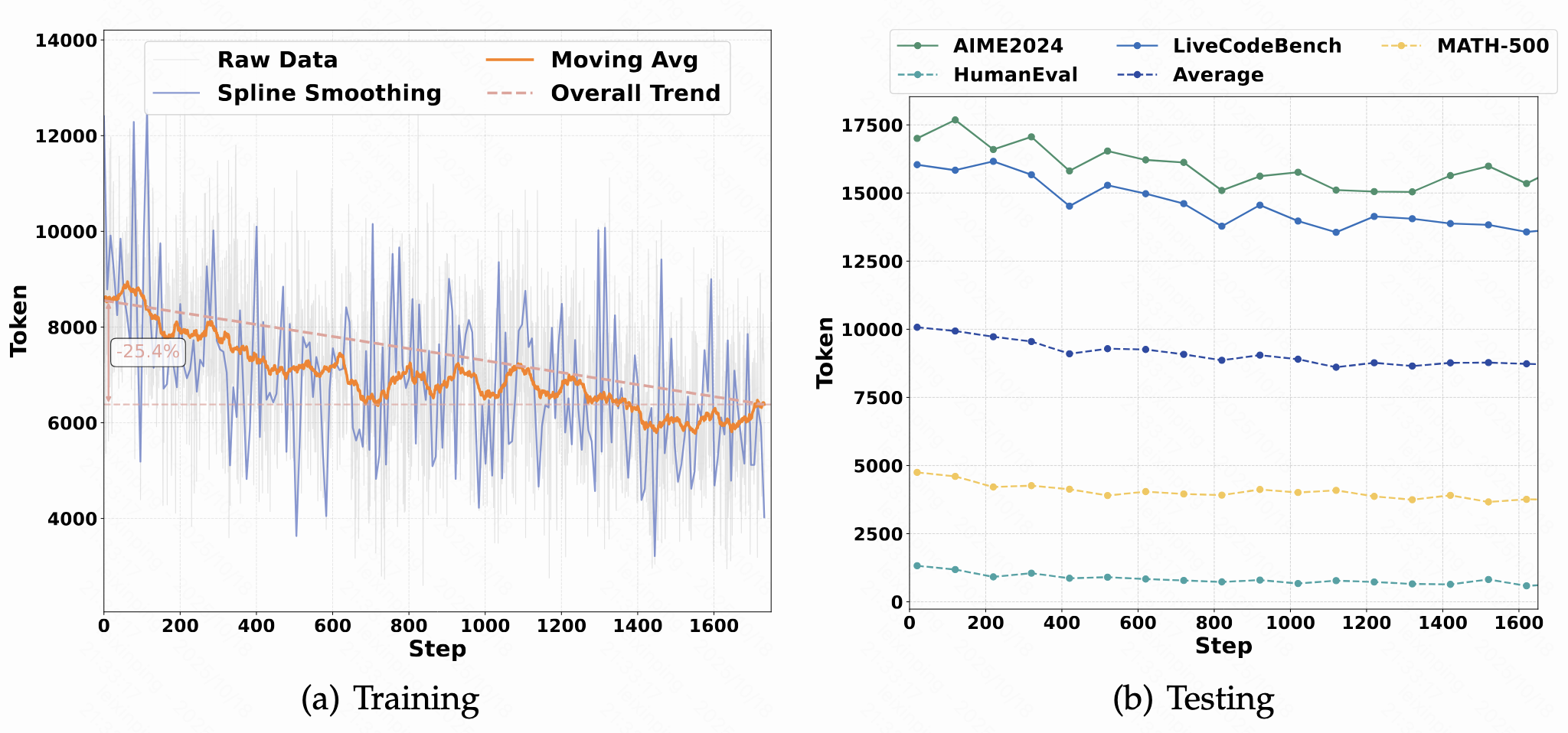 效率与成本的矛盾:始终生成冗长的推理轨迹是低效的。它直接转化为极高的Token使用量,意味着更慢的响应速度(延迟)和更昂贵的API调用或自建推理成本。在追求交互体验和成本控制的真实应用场景中,这成为了一个致命的短板。