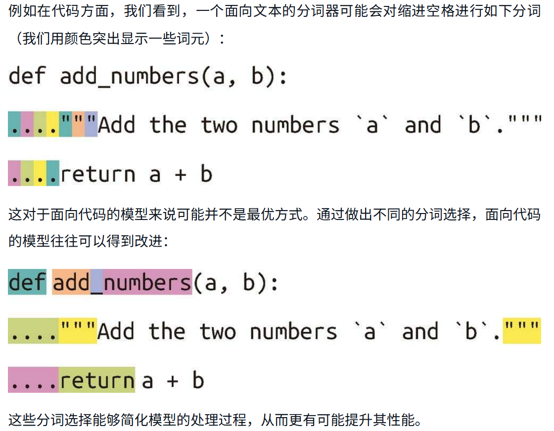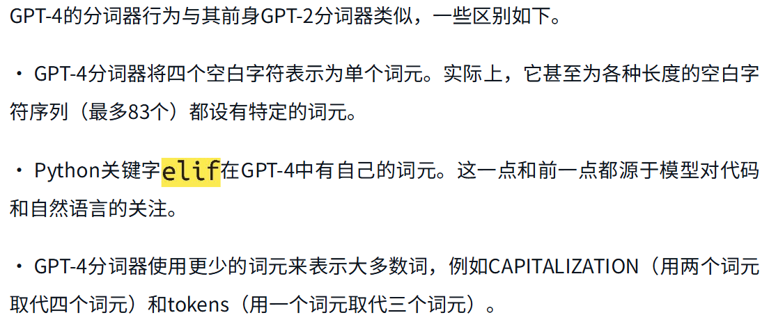 这类字符对于模型理解或生成代码非常重要。一个能够使用单个词元来表示连续四个空白字符的模型,更适合处理Python代码数据集。虽然模型也可以将其表示为四个不同的词元,但这会增加建模的难度,因为模型需要追踪缩进级别,这通常会导致性能下降。