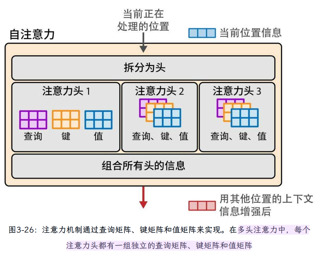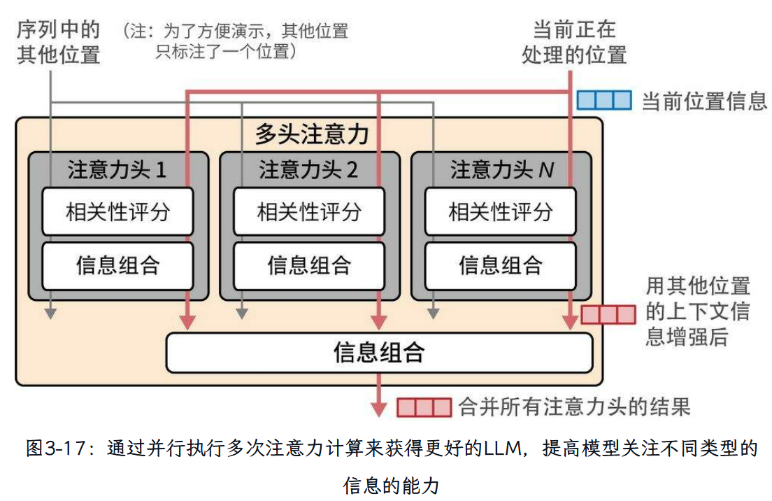 为了赋予Transformer更强大的注意力能力,注意力机制被复制多份,并行执行。这些并行的注意力执行过程被称为注意力头(attention head)。这提高了模型对输入序列中复杂模式的建模能力,使其能够同时关注不同的模式。