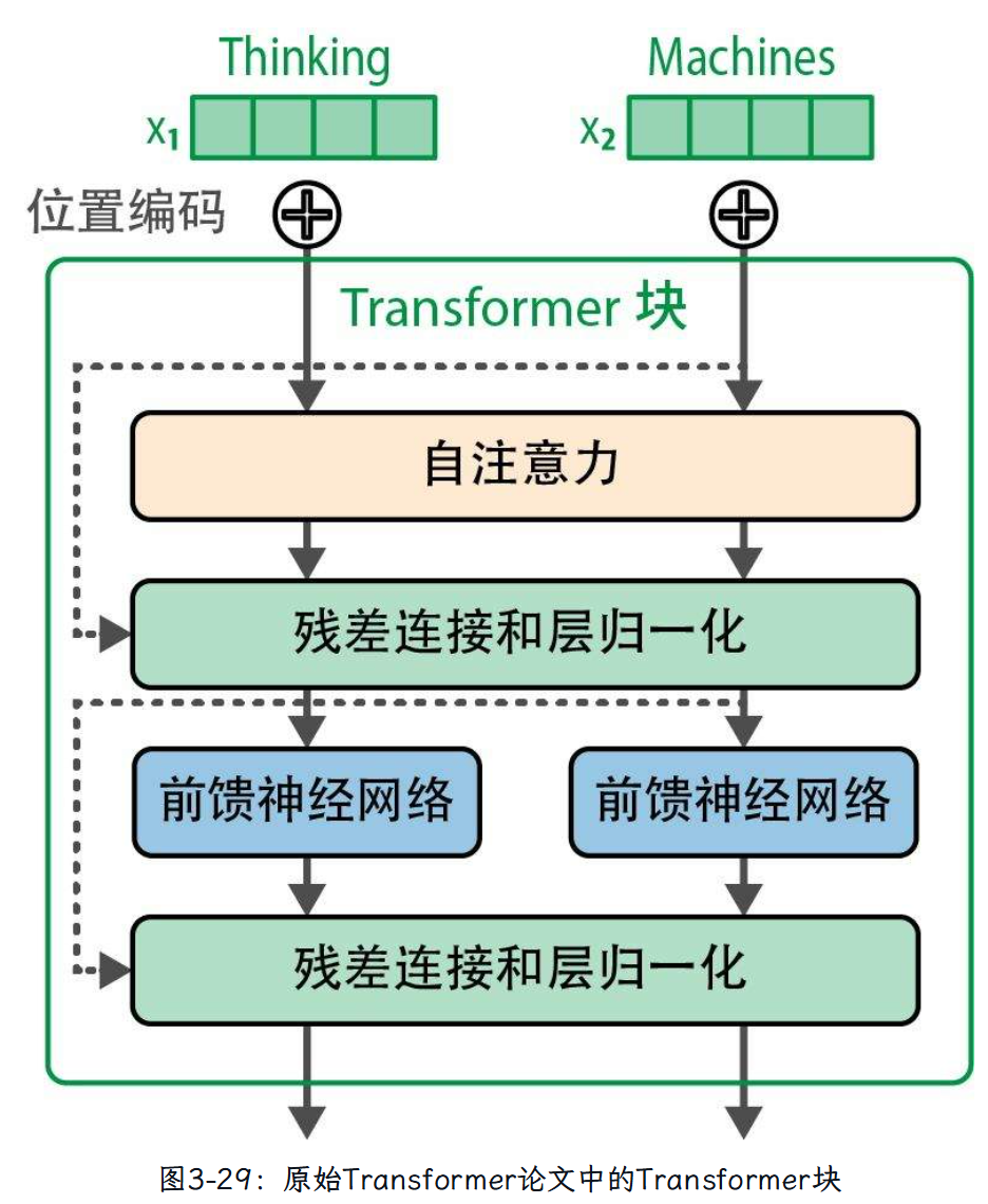 ①归一化的发生时间:归一化发生在自注意力层和前馈神经网络层之前。据称,这种方式可以减少所需的训练时间(参见论文“On Layer Normalization in the Transformer Architecture”)。