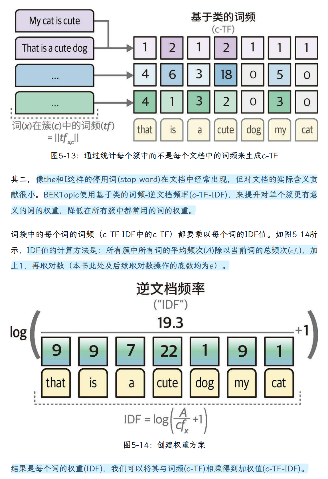 词袋模型的第一步是分词(tokenization),即将句子拆分成单个词或子词(词元,token),词袋模型旨在以数字形式创建文本的表示(representation),也称为向量或向量表示。在本书中,我们将这类模型称为表示模型(representation model)。