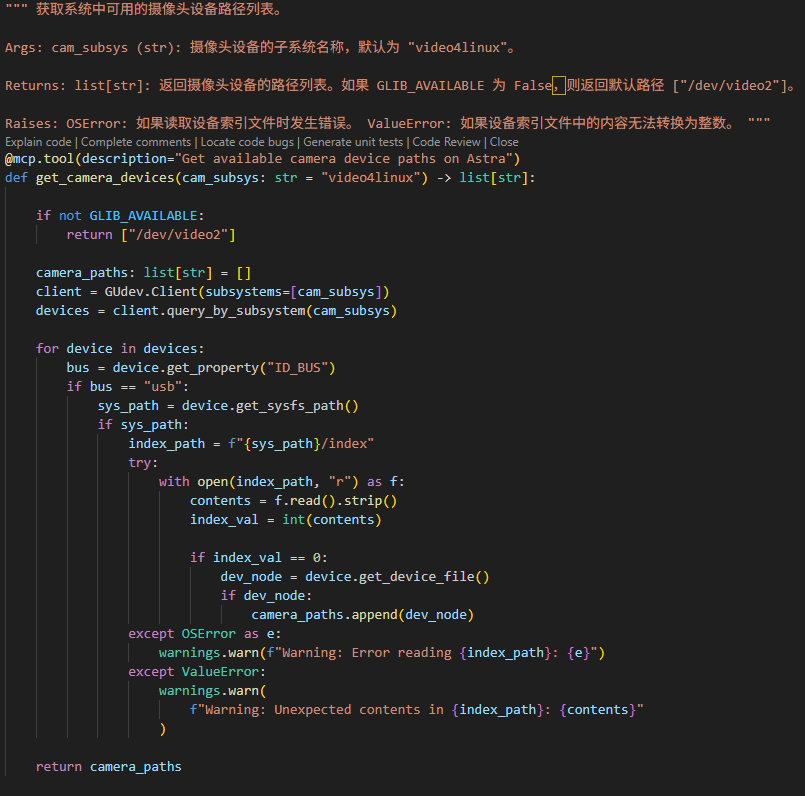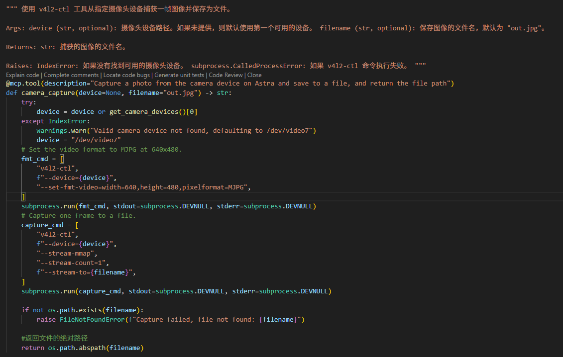 同样复用示例代码,但返回的数据为图片路径,LLM可将该路径传递给推理工具。同时,传入的设备名由前述工具返回。