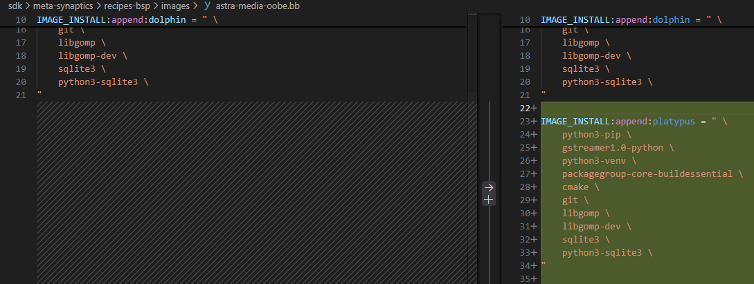 这里面比较粗暴的把SL1680有的都加上了,如果不想要个别的包可以自行修改。修改完之后,按照官网指导,编译OOBE image 并烧录到板子上(Astra Yocto Linux Developer Guide — Synaptics Astra SDK User Guide scarthgap_6.12_v2.0.0 documentation)