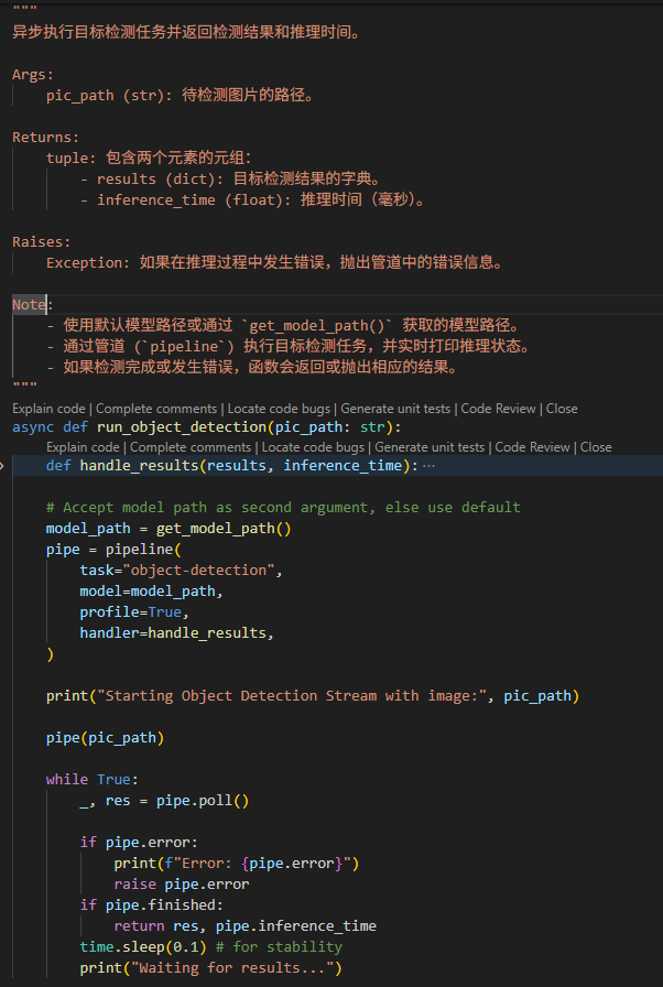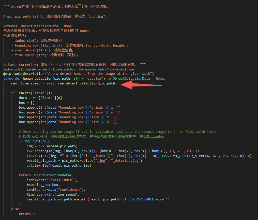 可以参考前面下载的Git仓库中的示例代码(vision/object_detect.py),该代码展示了如何使用Python库调用Astra NPU进行推理。
