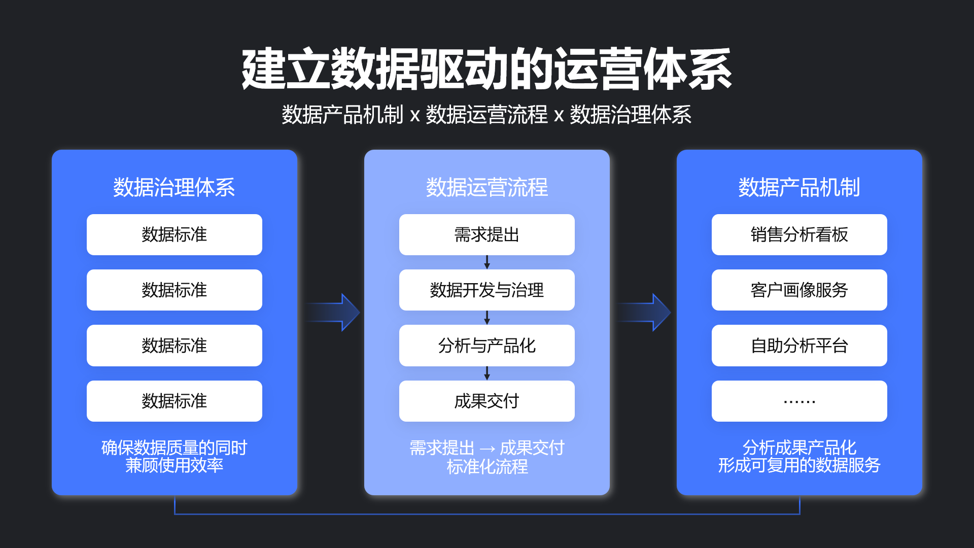 数据驱动不是单一项目,而是一套完整的运营体系。这个体系应该包括: