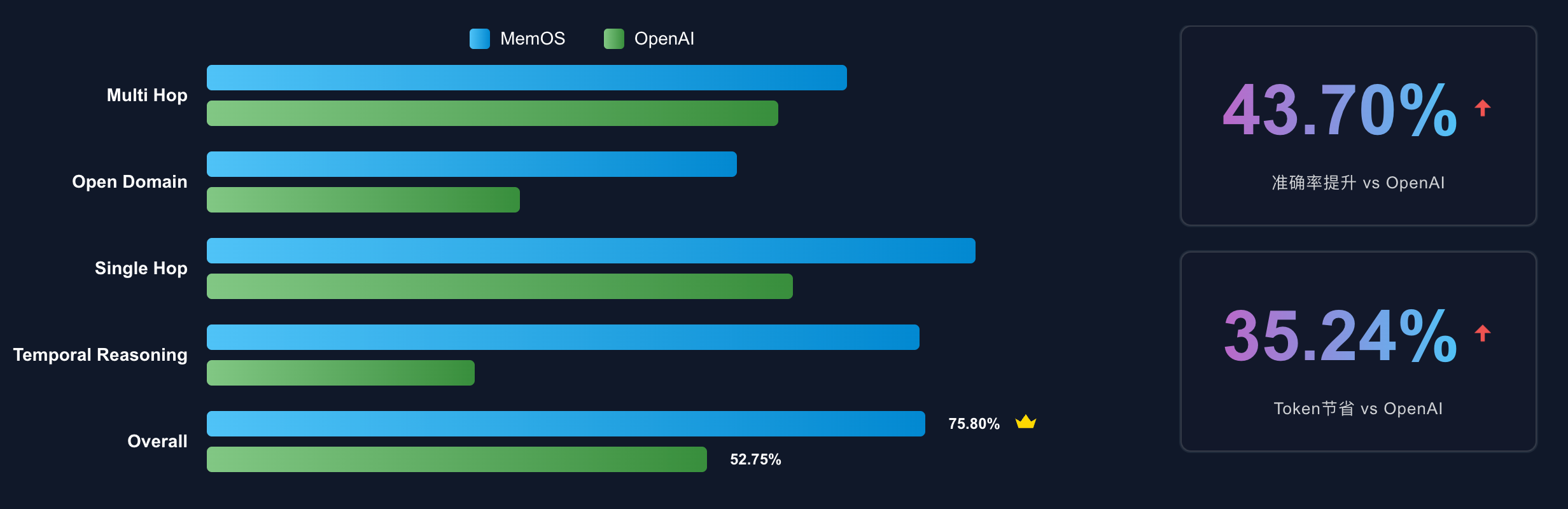换句话说,MemOS 是让 AI “长记性”的操作系统。它不仅存数据,还能在推理中动态调度、复用和更新这些记忆。