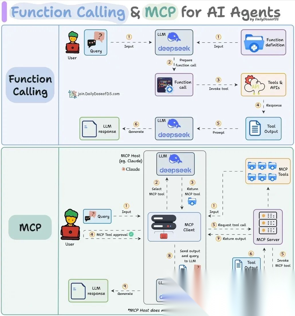 MCP 出现之前的主流是 Function Calling,但后者存在 2 个关键问题:
