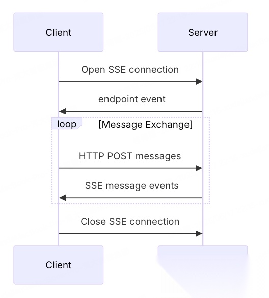 Client 和 Server 交互时,首先通过 SSE Endpoint 完成连接的建立,然后 Server 向 Client 推送一个 HTTP Endpoint,最后 Client 通过 HTTP Endpoint 向 Server 发送请求。