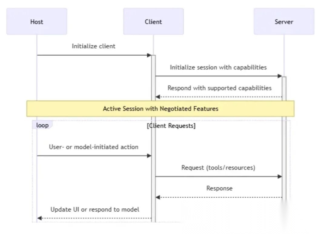 - 功能发现:负责查询 MCP Server 提供的能力,包括可用的 Resources、Tools 和 Prompts。