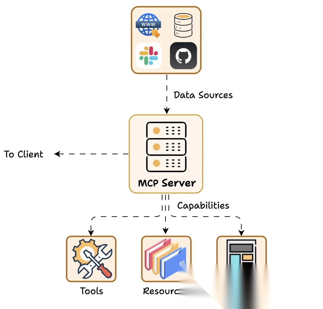 - Remote Resources:运行在 Internet 外部环境,MCP Server 通过 Web APIs 进行安全访问的远程服务,例如:云存储、远程 API、在线服务等。