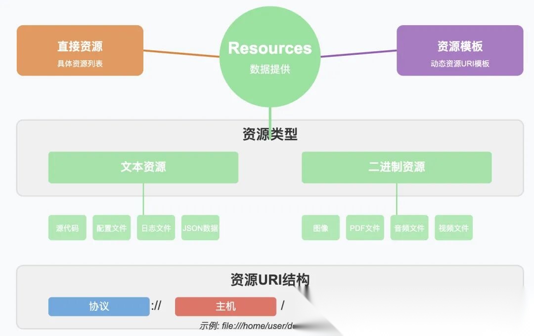 - Local Resources:运行在 MCP Host 本地环境,MCP Server 通过本地网络或协议进行安全访问的本地资源,例如:本地文件系统、数据库、应用程序等。敏感数据优先考虑本地执行,保障数据隐私和安全。