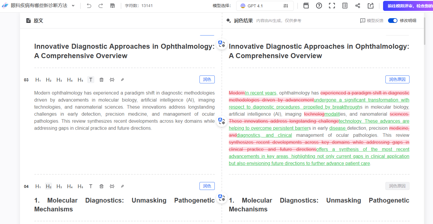 MedPeer的 智能润色 不仅能修正语法,还能优化逻辑结构和术语使用,让文章更符合学术发表规范。