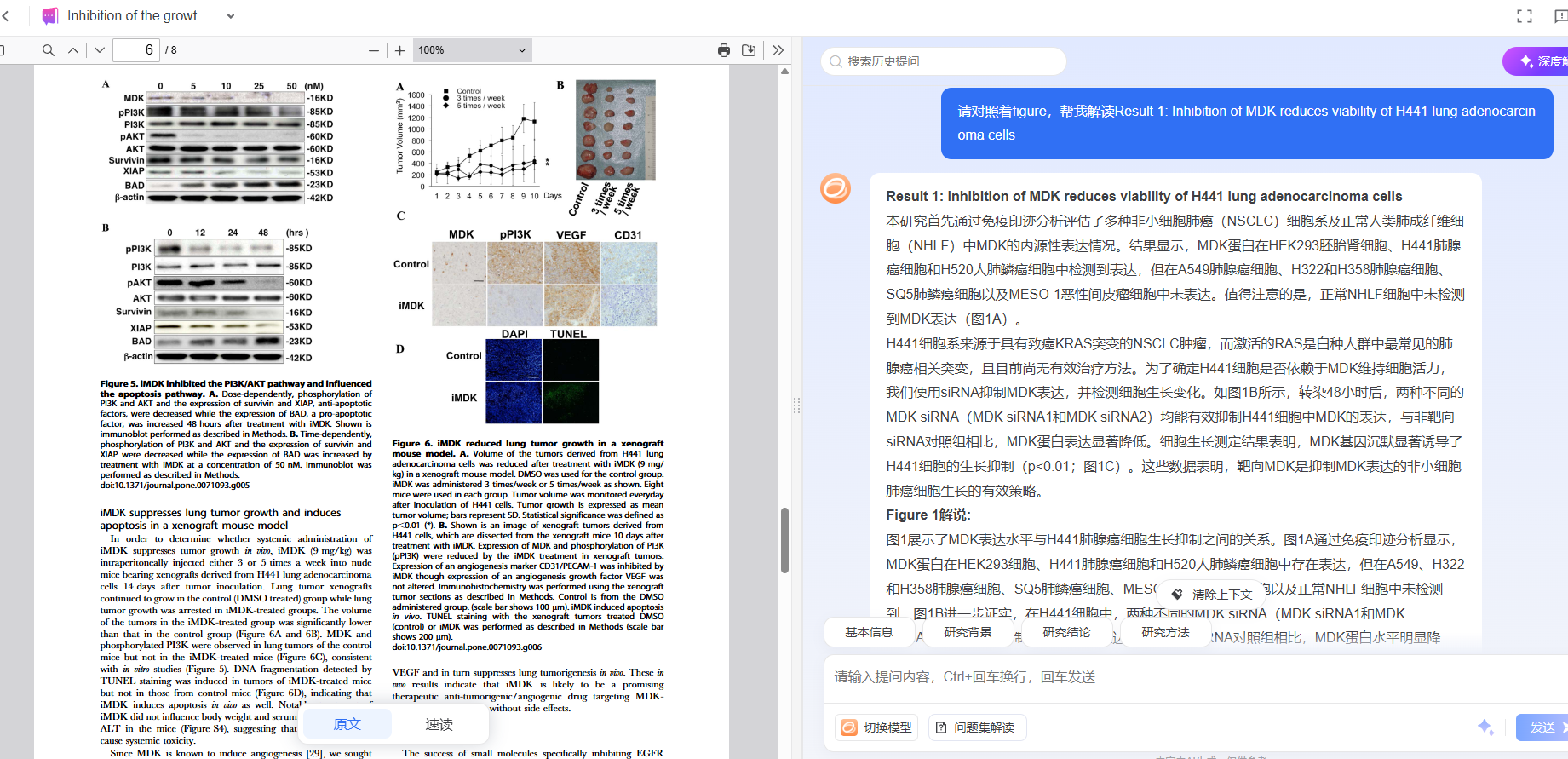 - 文档解读:上传PDF或Word文献,AI自动为你生成摘要、研究背景、结论,并支持针对性提问——尤其适合研究生和博士在短时间内掌握文献精华。