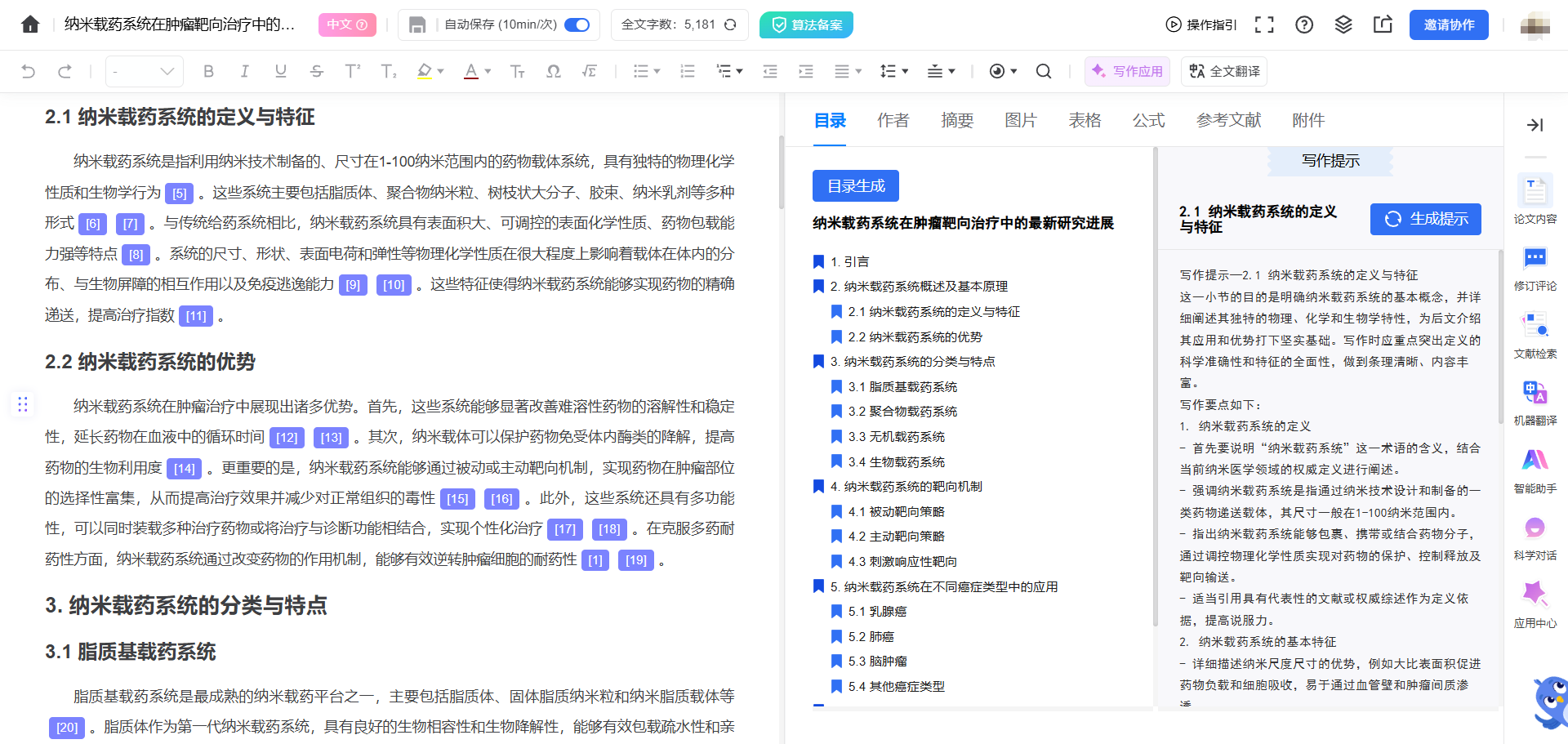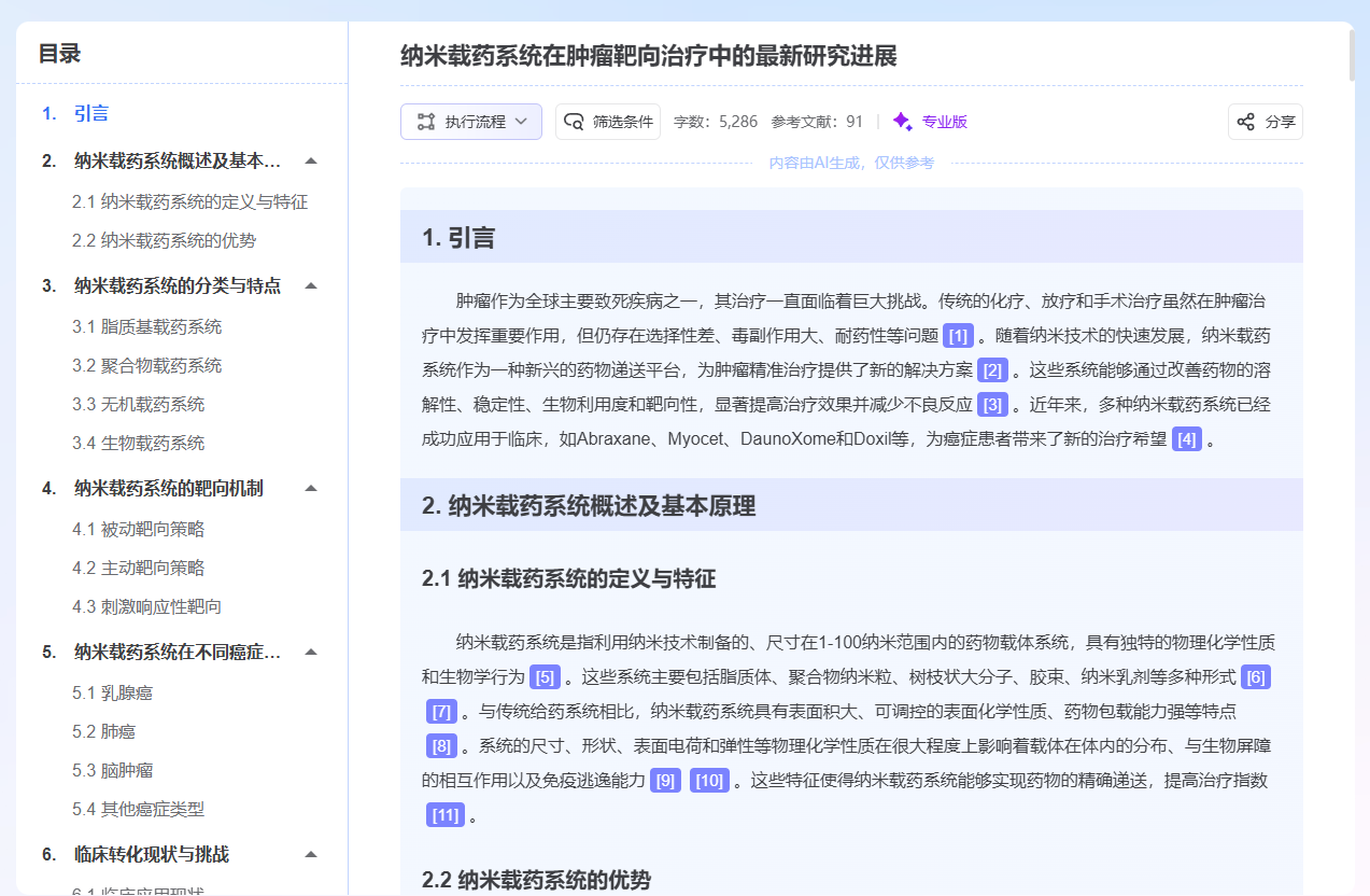 - 自动生成论文目录与章节大纲,支持LaTeX和Word格式导出,并可适配期刊格式要求。