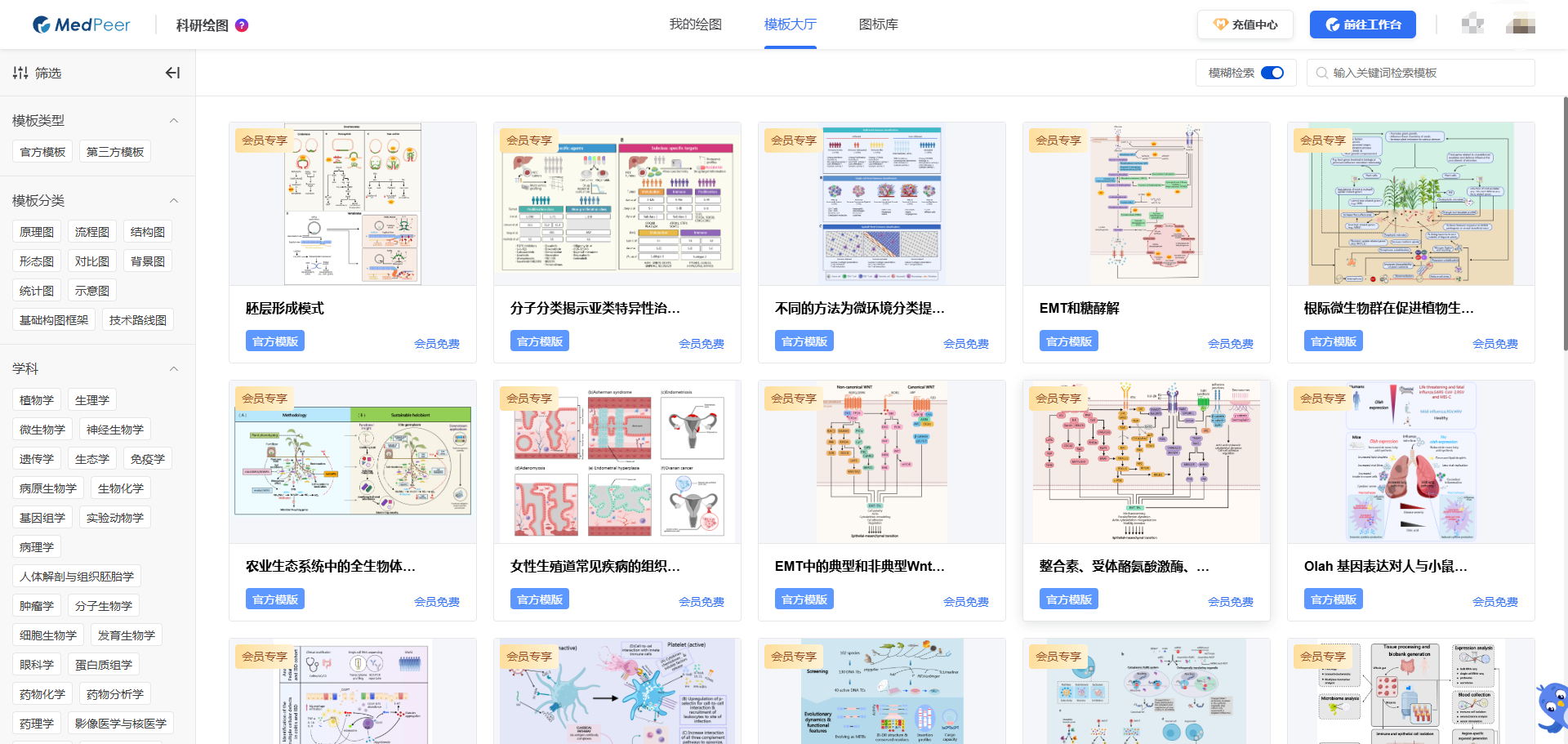 MedPeer的 科研绘图 工具提供期刊级模板和专业素材库,支持拖拽操作,即使没有设计基础也能快速完成: