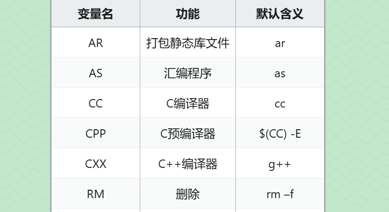 预定义变量,即由Makefile自身预先定义好的变量,我们可以直接拿来,也可以先重新赋值再用。