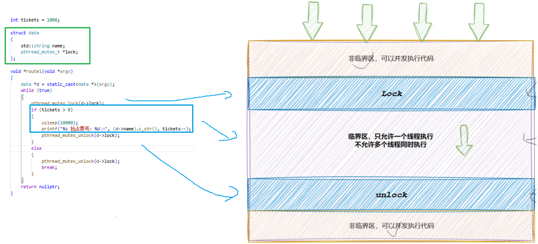 本质就是要对:对代码进行保护,形成临界区! --> pthread库提出来一个互斥锁的概念(可编程的)