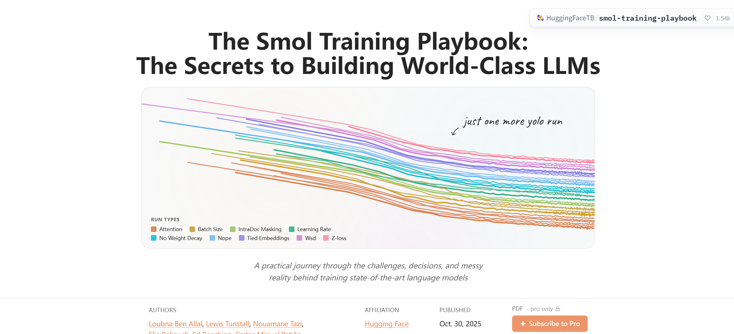从截图中可以看到,需要Hugging Face会员才能获取到PDF文档,小编已经下载好了,有需要的可以【Huggingface 214页训练手册:揭秘构建世界级大语言模型的秘密】,回复smol 获取资料。