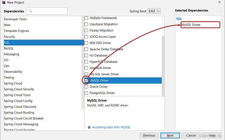 2. 选择当前模块需要使用的技术集(仅保留JDBC)