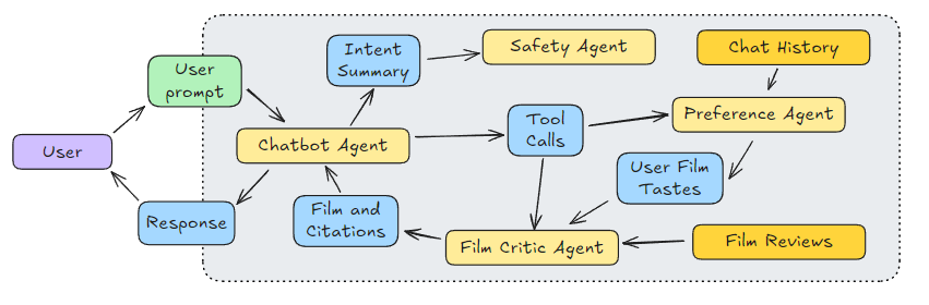 对于我们的多智能体电影排名系统,我们可能需要几个智能体: