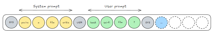 通过聊天框架,我们可以在"询问"最佳科幻电影之前,先指示LLM它是"一位电影评论家"。也许我们现在会得到 blade 和 runner 这样的响应token,因为AI扮演的角色更可能反映评论界而非大众的共识。