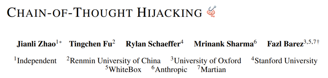 - 论文标题:Chain-of-Thought Hijacking