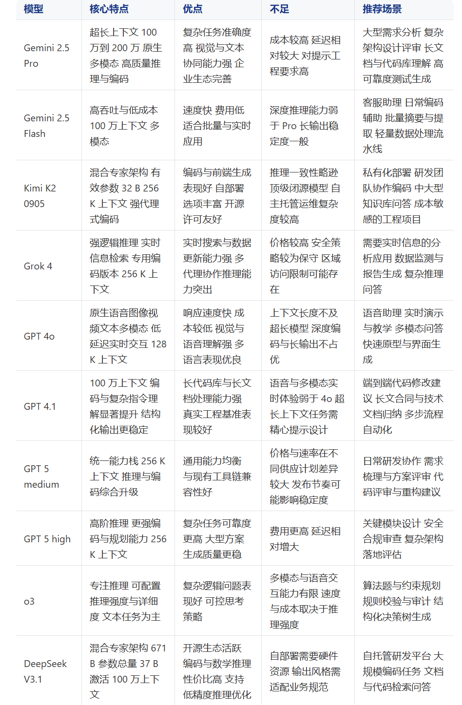 5.批量数据处理和日常运维,Gemini 2.5 Flash性价比之王当仁不让,日志摘要、工单处理、轻量数据流水线,速度快费用低,批量任务的最佳选择。