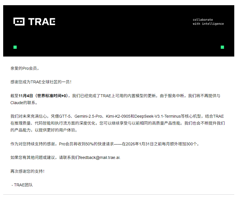 Anthropic宣布停止对中国服务后,Claude大模型在国内无法使用,引发开发者恐慌。本文详细介绍了10款优秀替代大模型,包括Gemini、GPT系列、Kimi等,分析了它们各自的特点和适用场景。作者结合实际开发经验,分享了如何根据不同开发阶段(需求分析、设计、编码、测试等)选择合适的大模型,形成高效开发流程,帮助开发者应对Claude缺失的困境。昨天,连字节的Trae都坚持不住了:从昨天到今