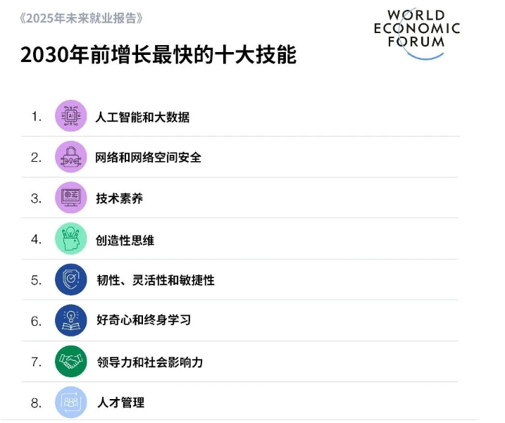 世界经济发展论坛发布的《2025年未来就业报告》指出,到2030年,增长最快的职业将集中在AI和大数据领域。