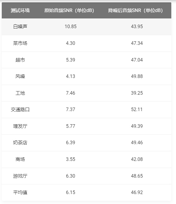 以下是通过模块规格书查到的,对不同噪声降噪的效果,可看看。