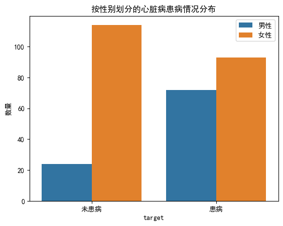 图中显示出:女性在 “未患病” 和 “患病” 群体中的样本数均多于男性。