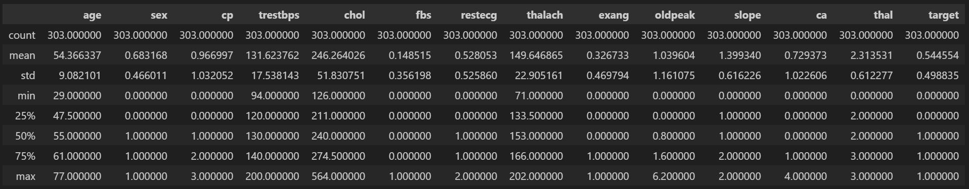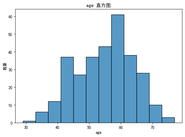target:目标变量,表示是否患有心脏病, 1 表示患病,0 表示未患病。